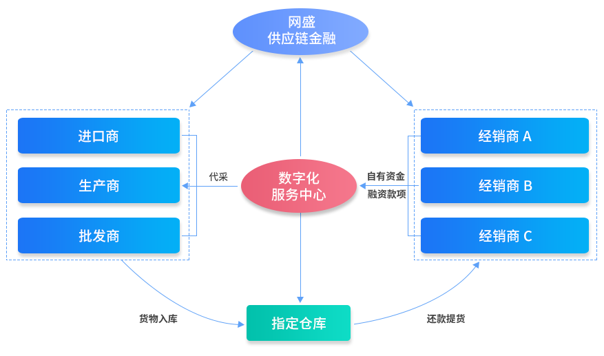 對供應鏈單個企業(yè)或上下游多個企業(yè)提供全面交易、金融等服務。 網盛供應鏈金融是依托網盛數字化交易平臺及供應鏈金融平臺,為